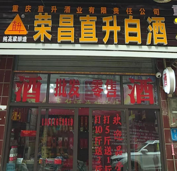 直升白酒又在榮昌昌龍大道67號(雍景灣小區(qū)入口旁)開了間直升白酒總店雍景灣直營店
